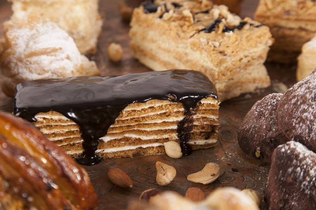 Совсем не то суфле, которое мы ожидаем от «Птичьего молока». Армянское традиционное «Молоко», или «Трчни кат» — это тонкие медовые коржи, прослоенные нежным сливочным кремом и покрытые шоколадной глазурью.
