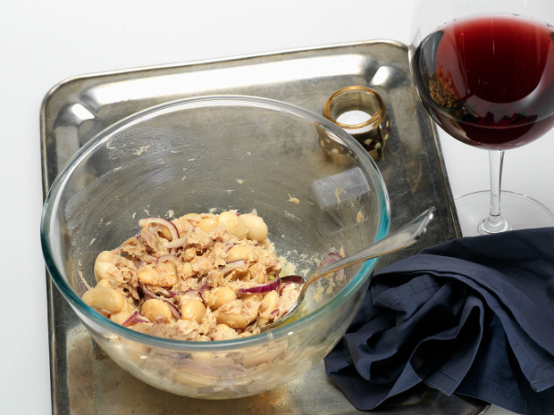 Перемешивать салат надо с осторожностью, чтобы фасоль не потеряла форму.