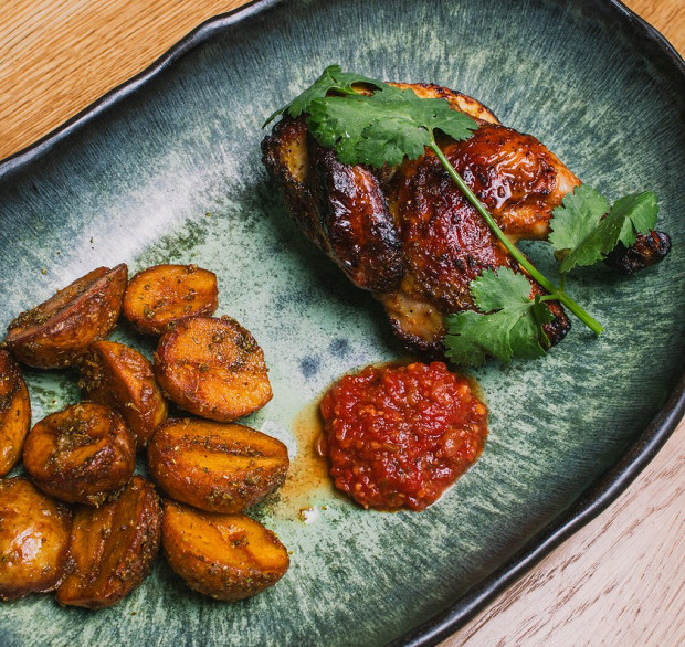 Цыпленок тапака с картофелем и кинзой