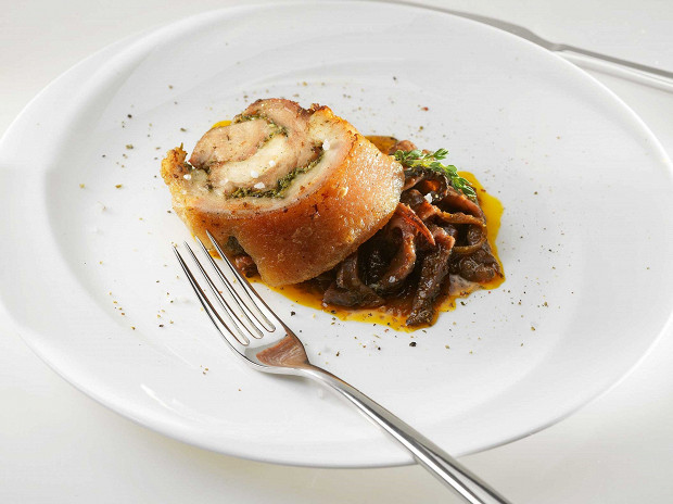 Рулет из свиной брюшины со скоблянкой из кукумарии
