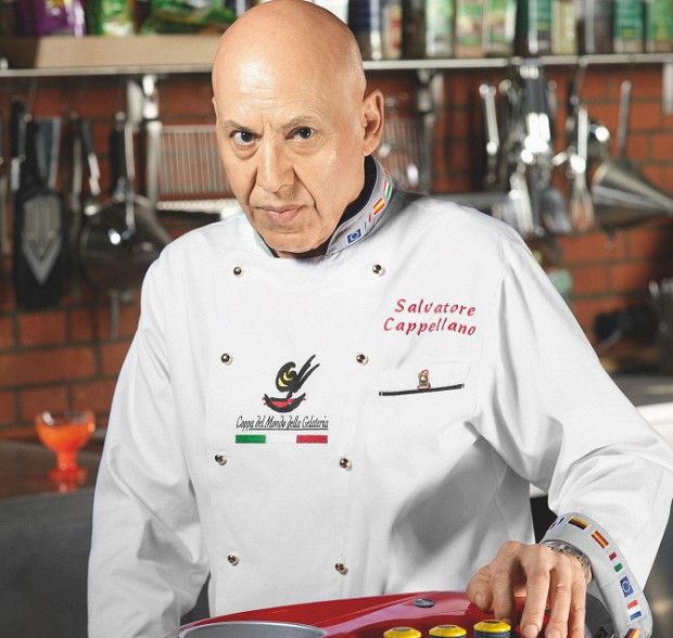 Сальваторе очень серьезно относится к процессу производства мороженого — что видно и по его лицу. Карьеру он начинал на родительской фабрике мороженого на Сицилии — и уже позже получил диплом института пищевой промышленности. Сейчас он занимается разработкой рецептов мороженого и добавок для компаний Dolce Gelato и «Шоколатье», а за свои рецепты получил множество наград. В том числе — первое место на мировом конкурсе Coppa del Mondo della Gelateria в 2012 году.