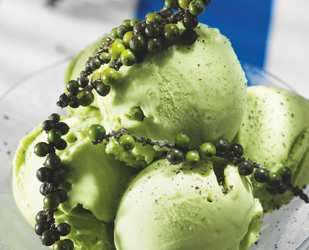 Свежемолотый черный перец придает сладкому фисташковому мороженому остроты и легкой пряности.