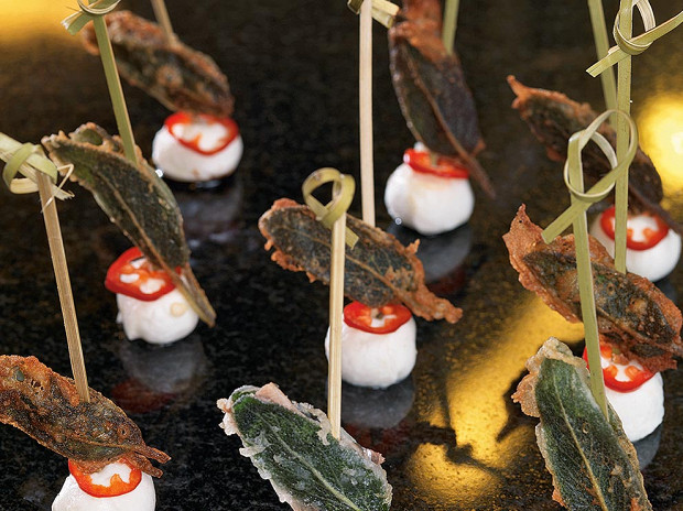 По-английски этот жанр называется finger food — еда, которую едят не с тарелок ножами, вилками и прочими приборами, а просто руками. Не выпуская из них бокал вина и не отвлекаясь от светского разговора.