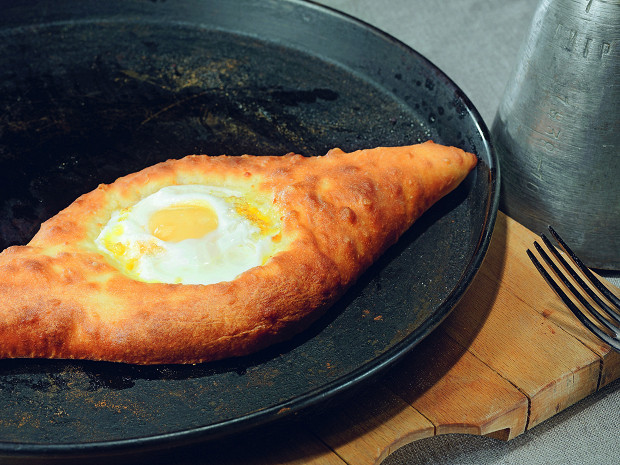 В лодочке аджарского хачапури можно запечь не одно яйцо, а столько, сколько удастся туда уместить.