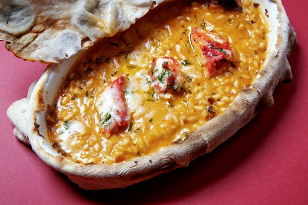 Это классическое ризотто, которое можно дополнять любой протеиновой составляющей. В ресторане Crosta на эту роль выдвигают камчатского краба. Вы легко можете воспользоваться консервированным.