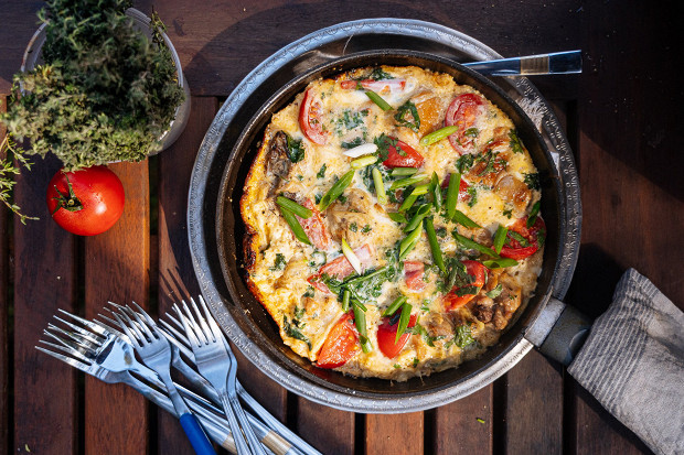 Это блюдо запросто может стать и обедом и ужином — сначала нужно приготовить цыпленка, а затем залить его омлетом. Рецепт из московского ресторана Smoke BBQ.