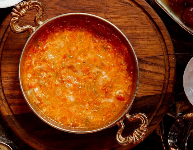 Менемен — это турецкий аналог шакшуки. Яйца разбивают в уже тушенную ароматную смесь из помидоров и сладких перцев. Рецепт из ресторана Eleven Meathouse.