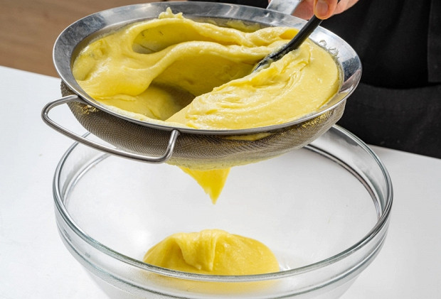 Готовое пюре протрите два-три раза через мелкое сито — для разрыхления.