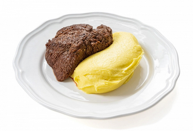 Но вот что интересно, сам Робюшон ратовал в своей книге «The Complete Robuchon» за куда более простую версию приготовления пюре. Как талантливый маркетолог и популяризатор французской кухни и самого себя, он оставил головоломку с превращением картошки в порошок и обратно исключительно для коллег-поваров и выдал совсем другой рецепт для домашнего пользования. Чтобы осуществить его в полном объеме, хорошо бы иметь в распоряжении картофель французского сорта «ратт», который за его форму еще называют бараньим рогом: у него особая, очень белая мякоть и повышенная крахмалистость. Но в принципе для любой другой картошки сценарий будет тот же. Перво-наперво клубни нужно отварить в мундире, залив их холодной водой. Очистить, добавить холодное сливочное масло, размять и очень долго взбивать, пока пюре не станет пластичным. Дальше можно внедрить в пюре мускатный орех, который так любят французы, а можно майоран, кервель или эстрагон. Но если добавить только соль и перец, все равно получится то самое гениальное пюре.