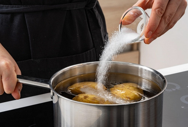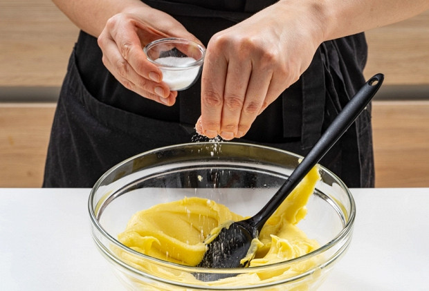 В самом конце пюре попробуйте и посолите по вкусу. Можете еще в него добавить белый перец, мускатный орех, эстрагон или любые травки.