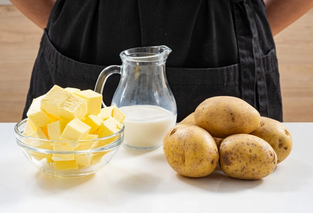 На 500 грамм картофеля нужно взять не меньше 230–250 грамм сливочного масла, в минимальной робюшоновской пропорции. Плюс 70 мл молока, соль и перец по вкусу.