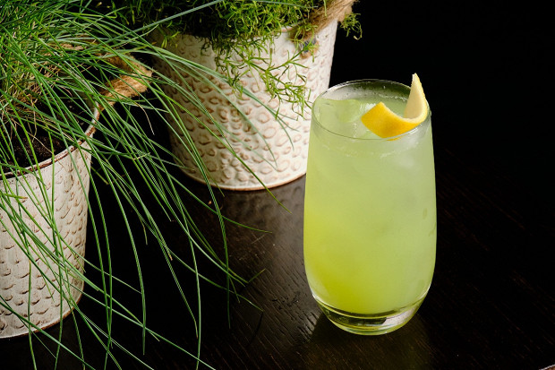 Шприц — главный легкий коктейль на протяжении многих сезонов. Напомним, что в оригинальной венецианской версии он представляет собой смесь из молодого белого вина, разбавленного водой. Тут ощущение «молодости» усиливает лимонад из зеленого горошка. А травянистую сочность отлично балансирует медовый ликер.