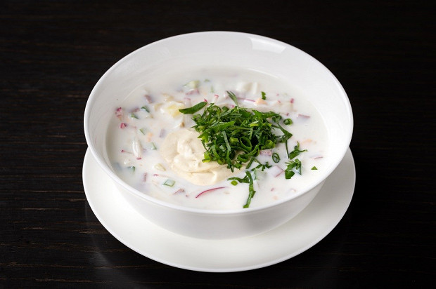 Главный летний суп приготовлен абсолютно классическим способом. Но во вкусе окрошки все решают детали: например, квасную или кефирную заправку следует чем-нибудь «заострить». Чаще всего в дело идет хрен, но в чистом виде хрен слишком прямолинеен и груб, к тому же не самым лучшим образом сочетается с редиской, одним из важнейших окрошечных ингредиентов. Поэтому наглый вкус хрена стоит облагородить и закруглить. В этом рецепте точно найденное соотношение хрена, сметаны и умеренно острой сладковатой дижонской горчицы. Такой «усилитель вкуса» подходит и к квасной горчинке, и к кефирной кислоте.