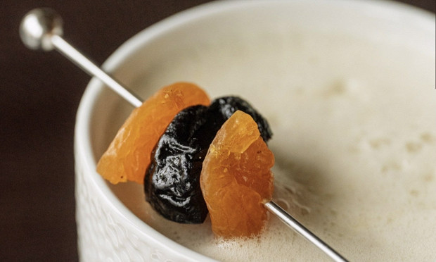 Рецепт из закусочных «Вай мэ!» — спасение для тех, кто по каким-то причинам вынужден отказаться от спиртного и чувствует себя обделенным на зимних вечеринках. Безалкогольная имитация глинтвейна очень похожа на правду: и внешне, и по ощущениям. Тут важно не ошибиться с выбором вишневого сока — он не должен быть терпким, скорее кисловатым; тогда основа напитка не станет слишком приторной при добавлении меда и будет вторить корице и бадьяну, которые нашим рецепторам тоже кажутся сладкими.