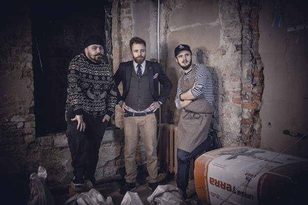 El copitas мы открыли за один месяц и один миллион рублей. Сейчас по интерьеру, может, уже и незаметно, но 1 января 2015-го это было очень видно; мы до сих пор, можно сказать, строимся. Здесь был такой трэшачок, мы его немножко сохранили, но вообще была жуть. Раньше здесь работал магазин про охоту и рыбалку, мы даже вывеску не стали убирать. Но, слава богу, власти города убрали соответствующую вывеску с улицы, потому что к нам во двор ходили реальные паломничества: спрашивали про червей, опарышей, подкорм. А за стеной — наш магазин Mr.Murka: мы делаем фартуки для барменов, поваров, татуировщиков, парикмахеров.
