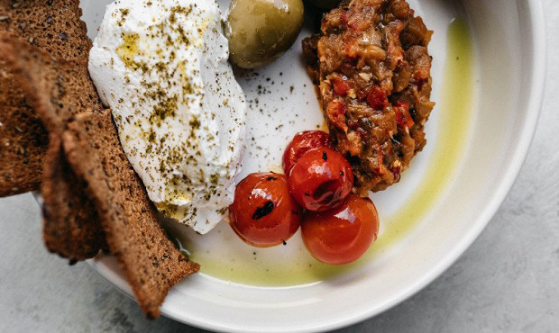 Австралийский повар Глен Баллис, открывший в Москве с десяток хороших ресторанов, считается мастером текстурных контрастов. В доказательство вот вам его рецепт из Avocado Queen: домашний ближневосточный сыр из пресного густого йогурта подается с пюре из запеченных овощей, оливками и томатами черри. А чтобы эта нежная еда не казалась монотонной, на верхушке задорно торчит хрустящий хлебный ломтик. Ближневосточный сыр лабне можно заменить на мягкий козий сыр, творожный мусс или даже густую сметану — сумма текстур на тарелке от этого не изменится.