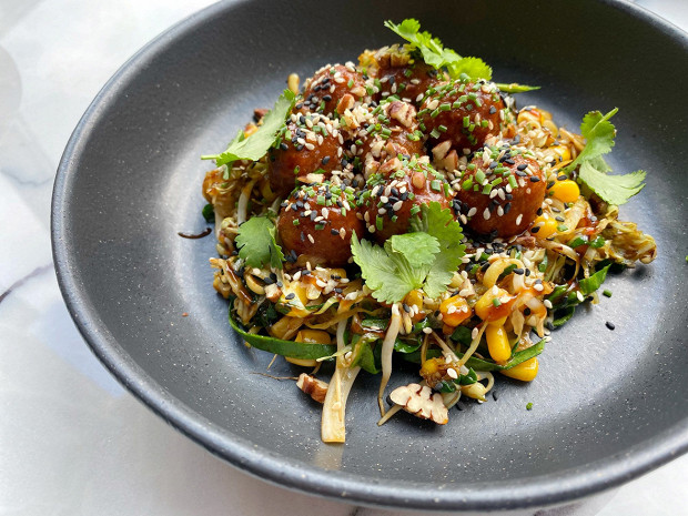 Яркий рецепт, где обе составляющих эффектней некуда: фалафель с большим количеством специй и капустная лапша, которая может выступать как самостоятельное блюдо. Рецепт шеф-повара ресторана Archie Виктора Массова.