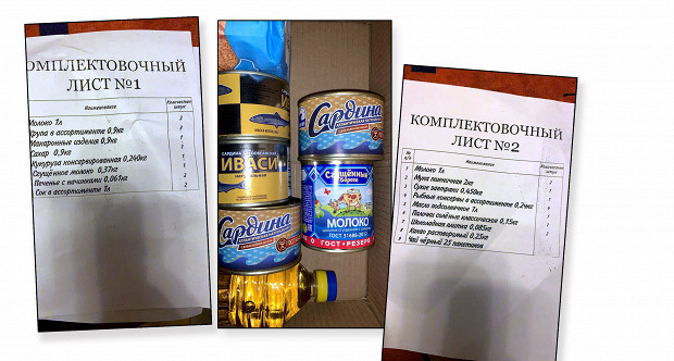 Продукты из набора: сардины, вермишель, растительное масло.