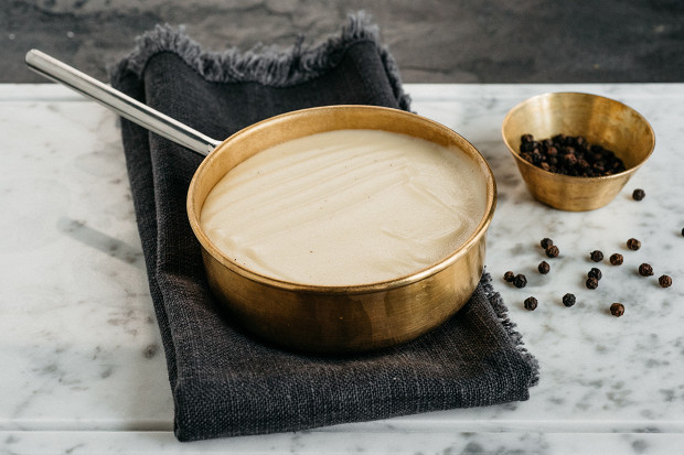 К базовой версии пюре уже в тарелке примешивают соус демигляс. Его можно сделать самостоятельно, это довольно долго, но увлекательно (подробней читайте тут). А можно купить готовый — иногда он продается в магазинах.