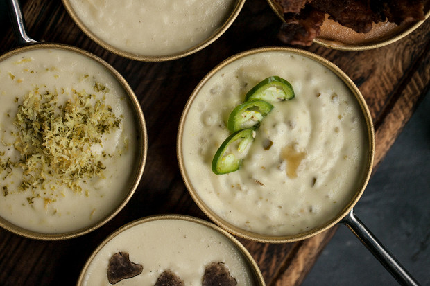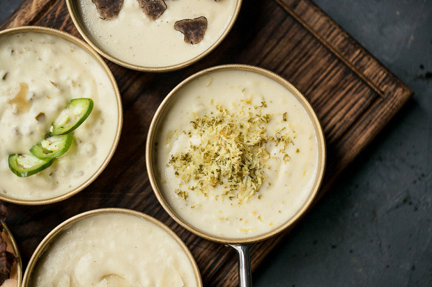 «Самое важное — правильно приготовить базовое картофельное пюре. В нем должно быть много сливочного масла — полкило на килограмм картошки, это усиливает вкус пюре. В нем должно быть теплое молоко, которое дает блюду нужную консистенцию. И в нем должен быть мускатный орех, который дает пюре нежные ореховые оттенки. Блюдо получается нежным, кремовым, тягучим — в этом его важное преимущество. Взбивать и вымешивать пюре можно миксером, но я считаю, что лучше делать это венчиком, на плите, на медленном огне. Такие условия помогут избавить картошку от комочков — постоянная высокая температура способствует их растворению. Чтобы пюре не пригорело, его периодически надо снимать с плиты, продолжая мешать, а потом ставить снова. Проделать это движение туда-сюда несколько раз. Это непросто, требует физической подготовки, зато у картошки будет шелковистая текстура. После того как комки исчезнут, пюре нужно взбить силиконовой лопаткой: она поможет насытить его кислородом. Ну а уже потом его можно соединить с чем угодно».