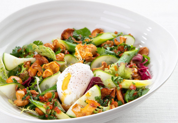 Лисички хороши в любых салатах. Из-за миниатюрности размеров их не надо резать, поэтому из хаотичной смеси ингредиентов обязательно красиво будут проглядывать целые рыжие головки. К тому же, как и любой другой гриб, лисички привносят в легкий зеленый салат ощущение белковой сытности. Весомость блюда можно еще усилить, подложив к лисичкам обычную жареную картошку. Но шеф-повар «Черетто море» Владимир Сидоров поступает куда интереснее, накинув на тарелку с летним салатом хрустящий клубок соломки картофеля пай.