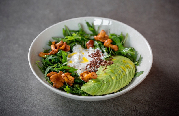 Любой боул — это конструктор с бесчисленным количеством вариантов. В современном ресторанном мире боулы автоматически ассоциируются с ЗОЖ, продукты должны быть составлены так, чтобы никакого вреда от такого питания не было по определению. В ресторане 800°C Contemporary Steak боул собирают из обязательного в этом жанре авокадо, целебных во всех смыслах семян льна, сливочного сыра и совершенно неожиданных лисичек. Впрочем, в концепцию блюда они вписались как влитые: авокадо отвечает за полезный жир, семена — углеводы, грибы — в чистом виде белок, в сумме — мир, дружба, баланс и одно из немногих вегетарианских блюд в ресторане со стейками.