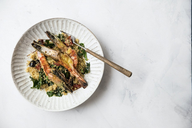 Этот салатный этюд выглядит простодушным собранием привычных всем ингредиентов, ведь маслины, оливки, шпинат и кускус — это предсказуемо вкусно. Но шеф-повар Алена Андреасян, концепт-шеф ресторана «Без рецепта», придумала ловкий ход — добавить в оливковое масло щепотку куркумы, отчего у салата появился золотистый праздничный цвет и пряный отголосок восточного базара.