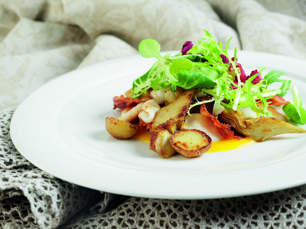 Салат с кальмарами и чоризо