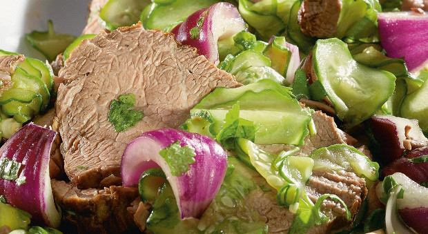 Важно хорошо охладить салат перед подачей на стол — тогда лучше раскроется маринад.