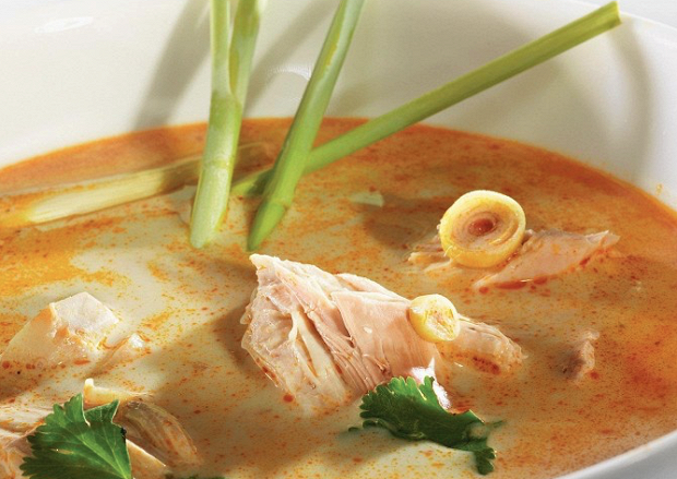 Рыжеватый оттенок и остроту супу придает паста том-ям из семи разновидностей острого перца. Если под рукой не окажется галангала, его можно заменить на обычный имбирь, но тогда вкус супа получится площе.