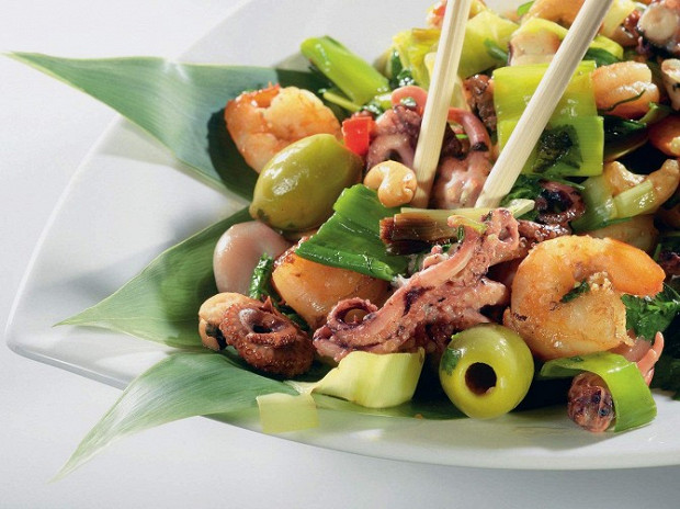 Овощи в салате остаются хрустящими и ярко-зелеными — в этом прелесть готовки в воке.