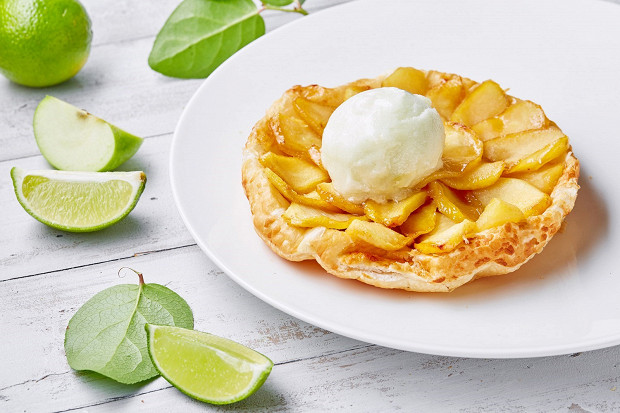 Классическое прочтение яблочной тематики — французский тарт татен. Рецепт Михаила Кукленко, бренд-шефа ресторана Ribambelle подразумевает использование готового (или покупного) слоеного теста, что делает этот непростой в оригинале рецепт очень доступным и понятным. Если и начинать практиковать татены, то с этого варианта!