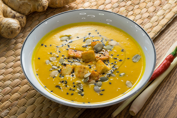 Крем-суп из тыквы с медом, имбирем и кокосом