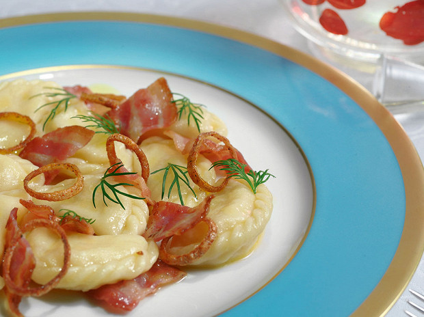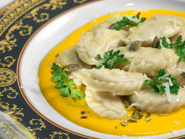 Близких родственников равиоли, вонтонов, хинкали и момо — пельмени и вареники — вспоминаешь с тем большей теплотой, чем холоднее время года. Шеф-повар ресторана «Высота 5642» Владимир Богожавец приготовил на нашей кухне пять не совсем классических вариантов — вроде вареников с тыквой, — и они оказались прямо-таки выдающимися.