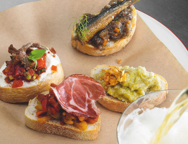 Собственно, четыре брускетты и есть порция, достаточная для того, чтобы приговорить пинту пива.
