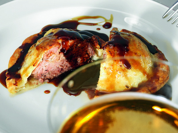 Утиный пирог с соусом из стаута хорош не только со стаутом — светлое пиво тоже будет кстати.