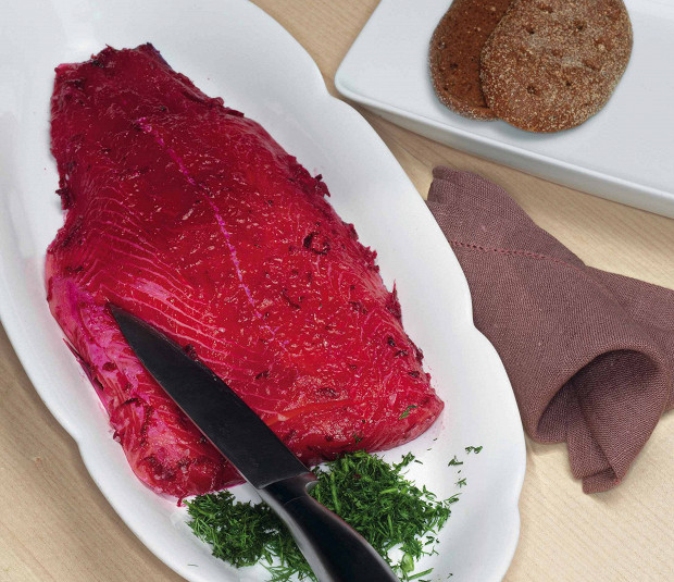 Главное предновогоднее развлечение — соединить рыбу со свеклой, чтобы вышли удивительные и цвет, и вкус. Распространенный, но не классический вариант знаменитого скандинавского гравлакса.