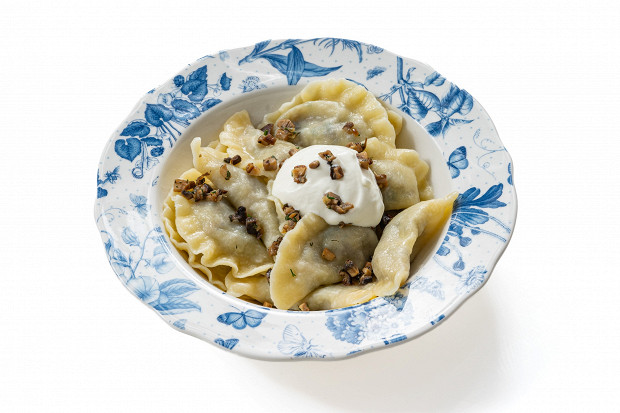 Грибная начинка сразу поднимает вареники в разряд парадного блюда. Тем более когда они купаются в сметане вместе с хрустящими шкварками из лука, и один запах от распаренного теста с густым грибным ароматом сулит обеденное счастье. Чтобы оно наступило, нужно при приготовлении вареников придерживаться нескольких правил. Во-первых тесто: оно здесь особенное — со сливочным маслом, заваренное крутым кипятком, очень нежное, но прочное даже при самой тонкой раскатке. Во-вторых, грибы: перед тем как мельчить, нужно их обязательно хорошенько обжарить до золотистой упругой сухости, а потом приправить укропом и луком, эти специи — катализатор аромата леса.