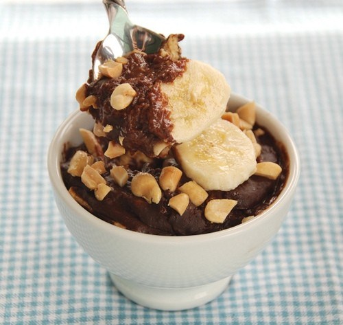 Калорийная бомба: манную кашу готовят вместе с нутеллой, а после подают со сливочно-лимонно-банановым муссом и фундуком.