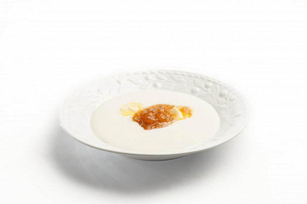 Знаменитая русская каша, как будто бы придуманная крепостным поваром Захаром Кузьминым для министра финансов Дмитрия Гурьева. Манка варится на молоке с орехами и сухофруктами, но в этом рецепте сухофрукты заменены фруктами консервированными.