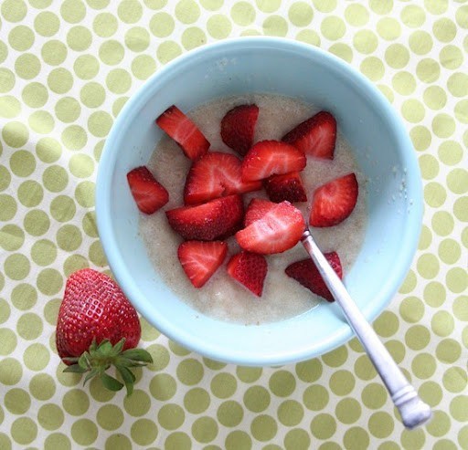 Опять-таки вместо обычного молока берется кокосовое, но к нему еще добавляются кокосовые сливки. Эту кашу можно подавать со свежей клубникой, но и без нее тоже очень хорошо.
