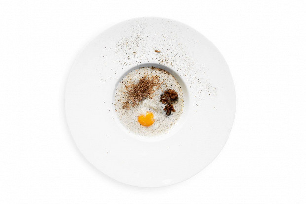 Очень красивый рецепт, позволяющий использовать любые грибы, лишь бы их было два-три вида. Белковую грибную суть оттеняют имбирь, кинза. В рецепте заявлен трюфель, но если его нет под рукой, смело используйте трюфельное масло.