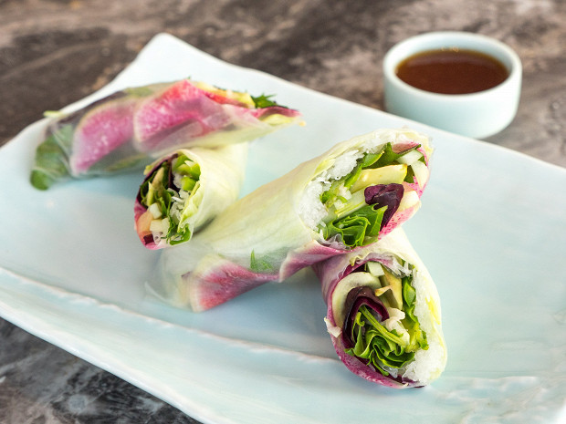 Спринг-роллы — азиатские рулетики из рисовой бумаги, в которую завернута начинка. В Китае, откуда блюдо родом, эта закуска типична для всевозможных весенних карнавалов, отсюда и слово spring («весна») в названии. Тончайшая рисовая бумага как полупрозрачная подарочная обертка: сквозь нее таинственно просвечивают зеленые всполохи овощей, розоватая мякоть красной редьки, маслянистый бок авокадо. Блюдо-сюрприз, в котором нет никаких жестких правил. Важно только сбалансировать вкус: тут авокадо, как сливочная помадка, оттеняет хруст любых свежих овощей.