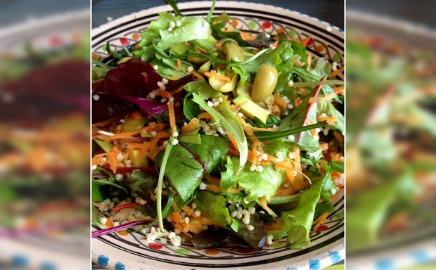 Легкий салат с руколой, авокадо, оливками и лимонным соком. Основательности салату придает горстка вареной крупы.