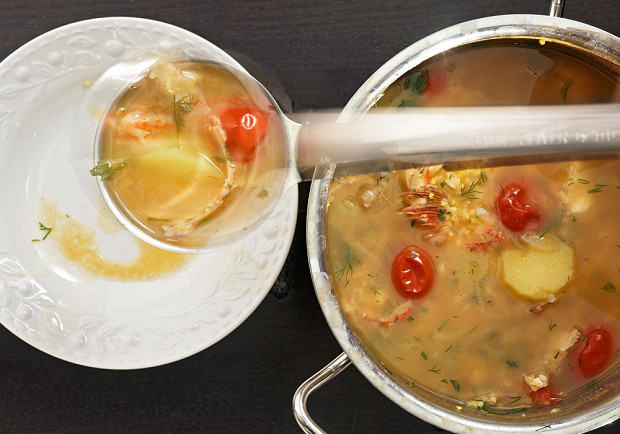 Хоть в рецепте, конечно, можно обойтись без водки, но, как утверждают истинные рыбаки: «уха без водки — обычный рыбный суп».