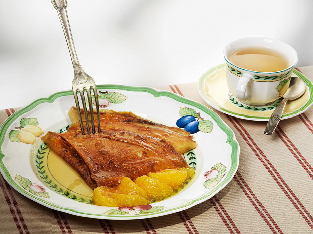 Замечательный французский десерт, предполагающий, что блины будут погружены в звонкий цитрусовый сироп. Есть несколько вариантов готовки и подачи креп-сюзетт, например, часто к ним подают взбитые сливки или шарик мороженого.