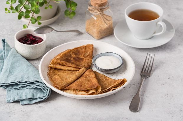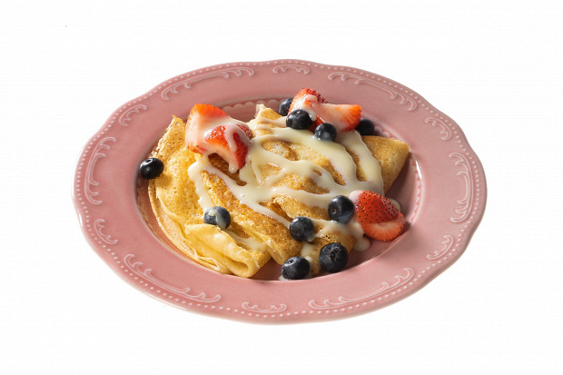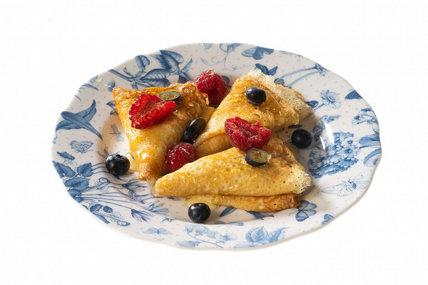 Классические блины и желеобразная начинка со вкусом летних ягод и детства. В ход идут ежевика, черная смородина и вишня, но никто не мешает поменять этот состав по своему усмотрению.