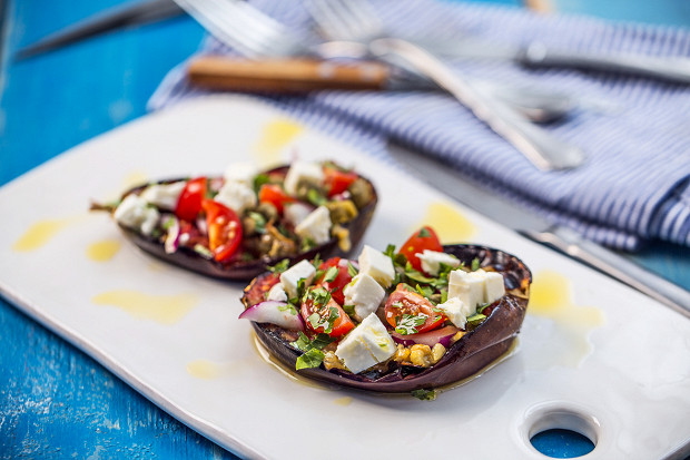 Еще один рецепт Стаматиса Цилиаса из «Молон Лаве»: фаршированные помидорами и сыром баклажаны.