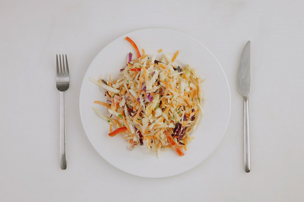 Американский салат, в который помимо обязательной капусты добавили также морковь, яблоко и редьку.