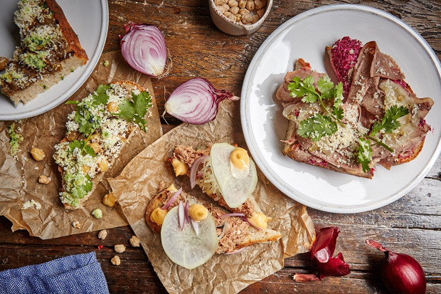 Консервированный тунец, два вида редьки — черная и зеленая, мед, кинза и оливковое масло. Рецепт Дмитрия Шуршакова, бренд-шефа многих московских ресторанов; такую брускетту готовят в гастробаре «Никуда не едем».